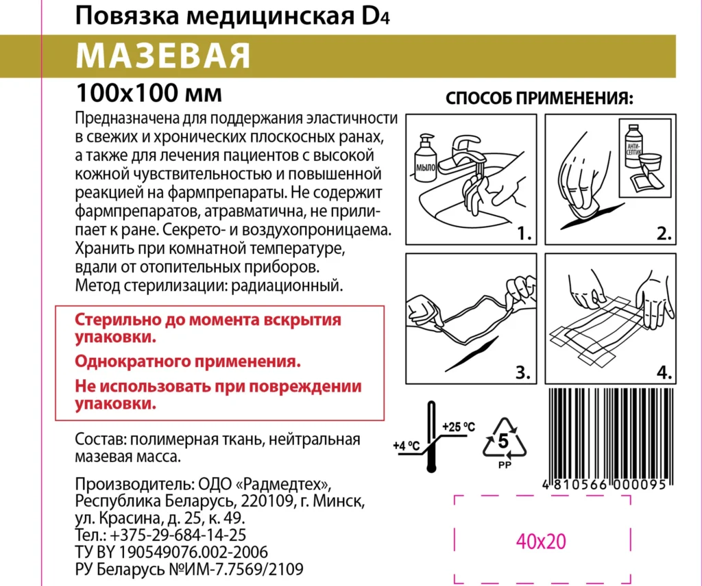 Повязки, производимые ОДО «Радмедтех», в полной мере соответствуют вышеперечисленным требованиям, а по стоимости значительно ниже поступающих на отечественный рынок раневых покрытий ведущих мировых производителей, таких как Paul Hartman, Raushen, ЗМ и др.